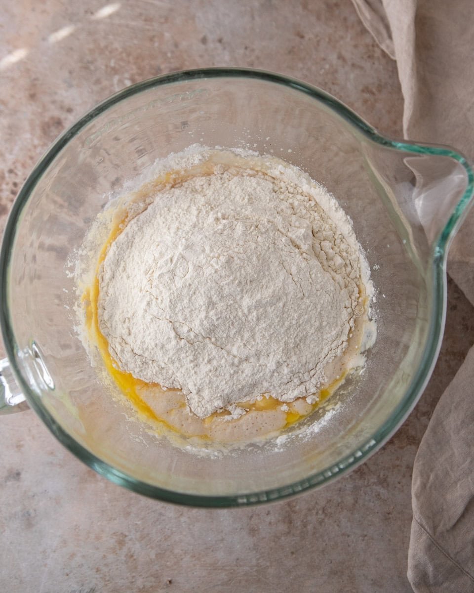 • In a small bowl, whisk the warm milk and sugar until dissolved. Sprinkle yeast over top and let sit for 5 minutes until foamy.