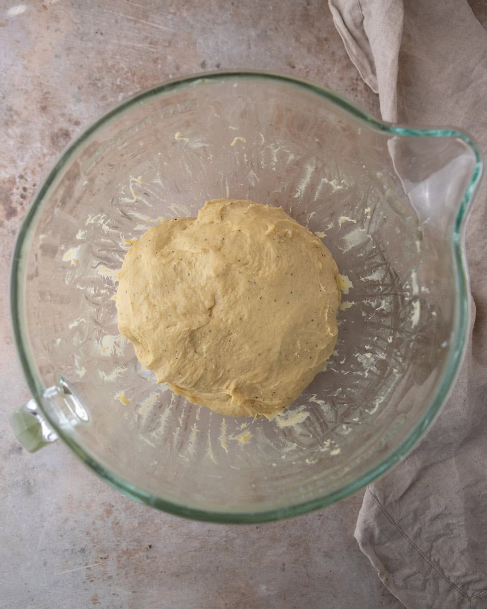 This dough is mixed in a stand mixer with a dough hook, then chilled in the fridge so it’s easier to roll and shape.