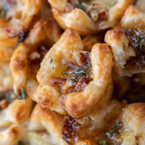 If you have leftovers, reheat them in the oven (or air fryer) rather than the microwave. A few minutes in a hot oven will crisp the puff pastry back up, whereas the microwave tends to make it soft.