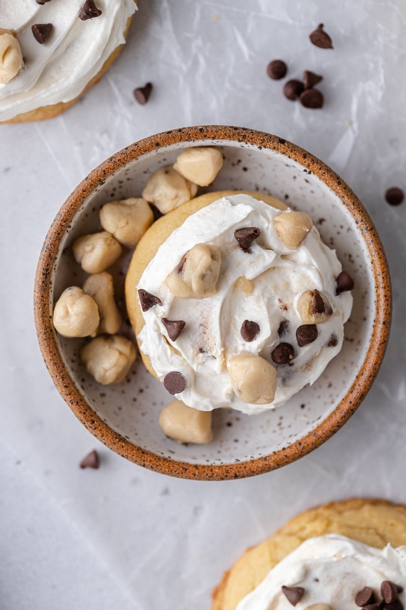 These Crumbl Nilla Bean Cupcake Cookies taste just like a classic vanilla bean cupcake, but as soft, chewy cookies. Each cookie is topped with whipped vanilla bean buttercream for a bakery-style finish that melts in your mouth.