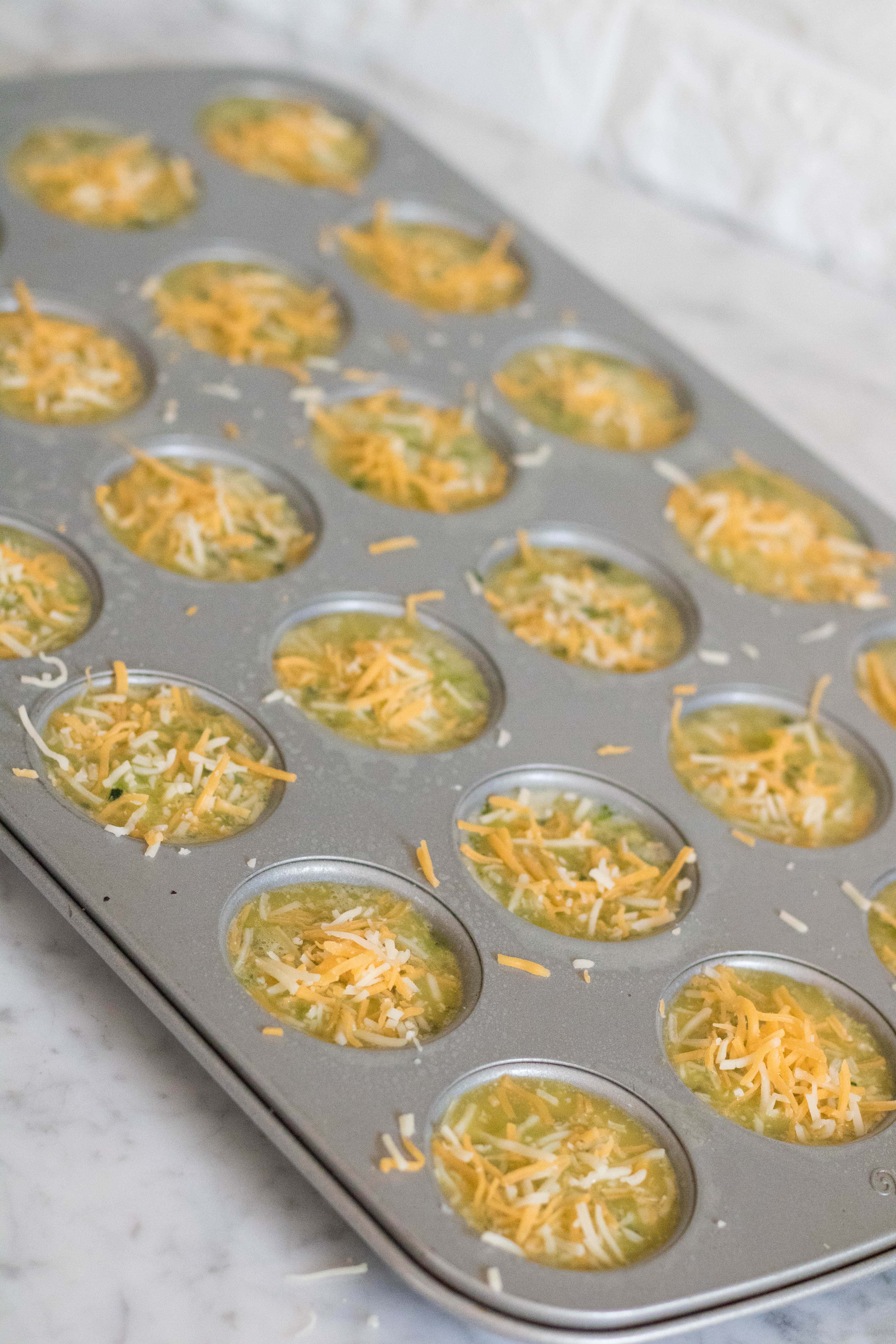 - Divide the mixture between the muffin cups, sprinkle with the grated mozzarella cheese, and bake until set and no longer jiggly, about 15 minutes.